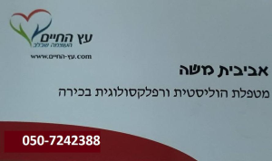 אביבית משה, עוסקת באיזון וריפוי גוף ונפש בעזרת אבחון דרך כף הרגל וטיפולי רפלקסולוגיה, הילינג אנרגטי, תזונה הוליסטית מותאמת אישית, עובדת עם קלפי "אושו זן טארוט" - לאבחון רגשי.
