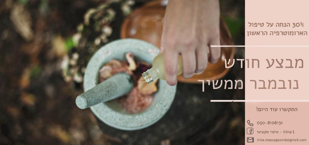 מעסה ומטפלת מקצועית ובכירה בעלת נסיון של 16 שנים מתמחה בעיסוי שוודי הוליסטי רפואי וקלאסי לכל אירוע כמתנה או שיי לחג מסיבות רווקות,מתנה לבן/בת זוג בצימר,ימי הולדת,ועיסוי עד בית הלקוח