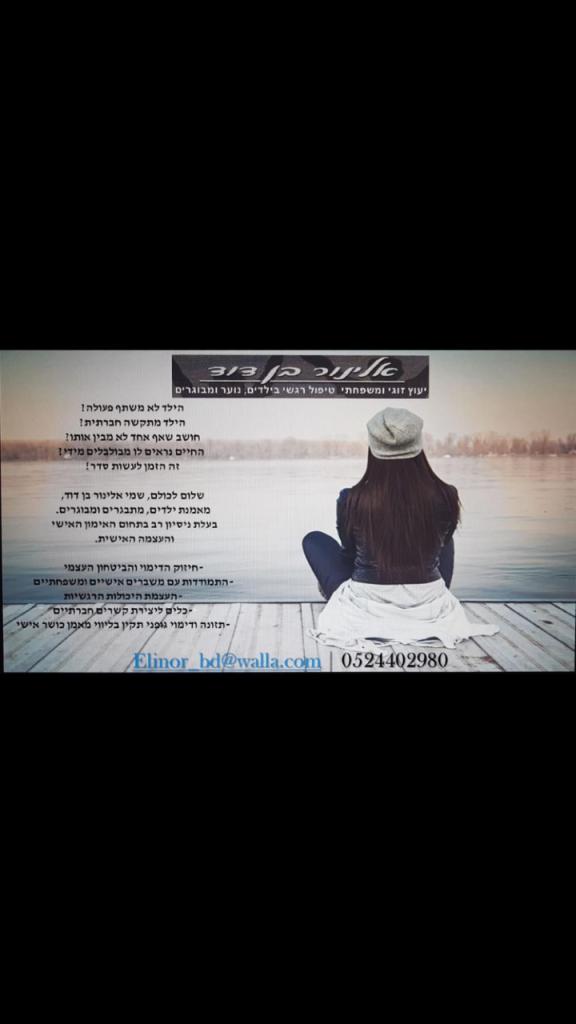 אלינור בן דוד יועצת זוגית ומשפחה,משקמת באומנות,תטא הילינג,NLP, קאוצ'רית לילדים,נוער ומבוגרים.