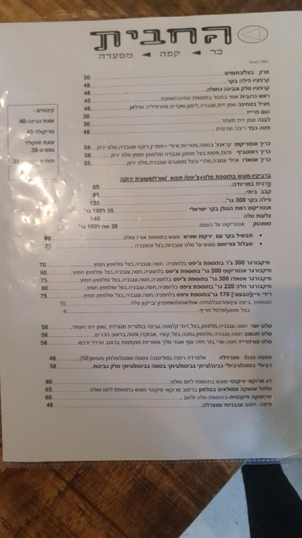 בר מסעדת החבית מציע תפריט מגוון מיקבורגר,בשרים טובים,סלטים ,מנות ראשונות וכריכים. בר אלכוהול עשיר ומבחר גדול של בירות מהחבית. מוזיקה טובה ברקע ואווירה כייפית.