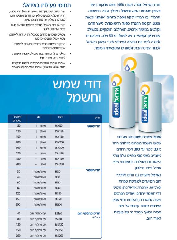 חברת אידאל משווקת ומייצרת את מוצריה והמערכות הסולריות שלה תחת התקינה המחמירה של מכון התקנים הישראלי ISO 9001. החברה מקפידה על מקצועיות בשיווק ביצור ובשירות ללקוחותיה. למעלה מחמישים שנות ניסיון בתחום התרמו...