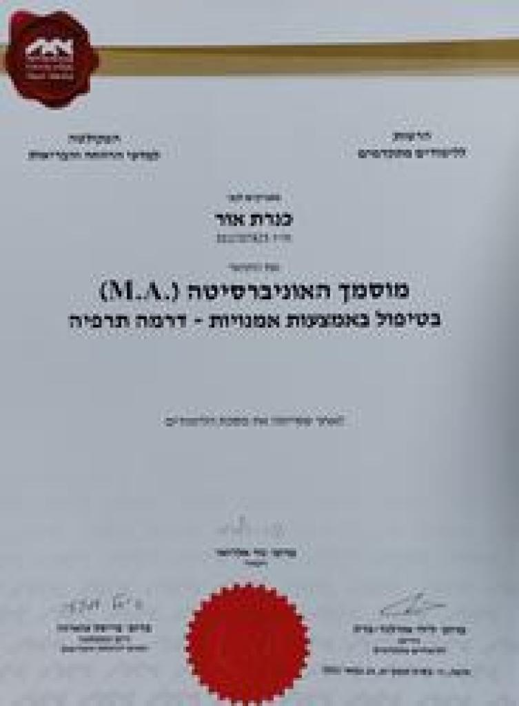מטפלת בהבעה ויצירה, דרמה תרפיסטית (M.A), מדריכת הורים. הטיפול הרגשי לילדים בגילאי גן ויסודי: טיפול פרטני, טיפול הורה ילד וטיפול קבוצתי. מיועד לילדים החווים משבר, חרדות ופחדים, בעיה בריאותית, קושי לימודי, חברתי, דימוי עצמי ועוד. בעלת ניסיון למעלה מ-10 שנים עם ילדים בעלי קשיי קשב וריכוז, ילדים בעלי קשיים התנהגותיים, חברתיים ורגשיים. בתחום החינוך המיוחד: ילדים לקוי שמיעה וחירשים, עיכוב התפתחותי.