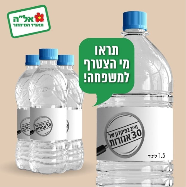 למיחזורית (מתקן מיחזור), משליכים את בקבוקי השתייה המשפחתיים ומהיום גם אפשר להשליך בקבוקי פלסטיק בגדלים שונים כולל דטרגנטים זה טבעי שתמחזר