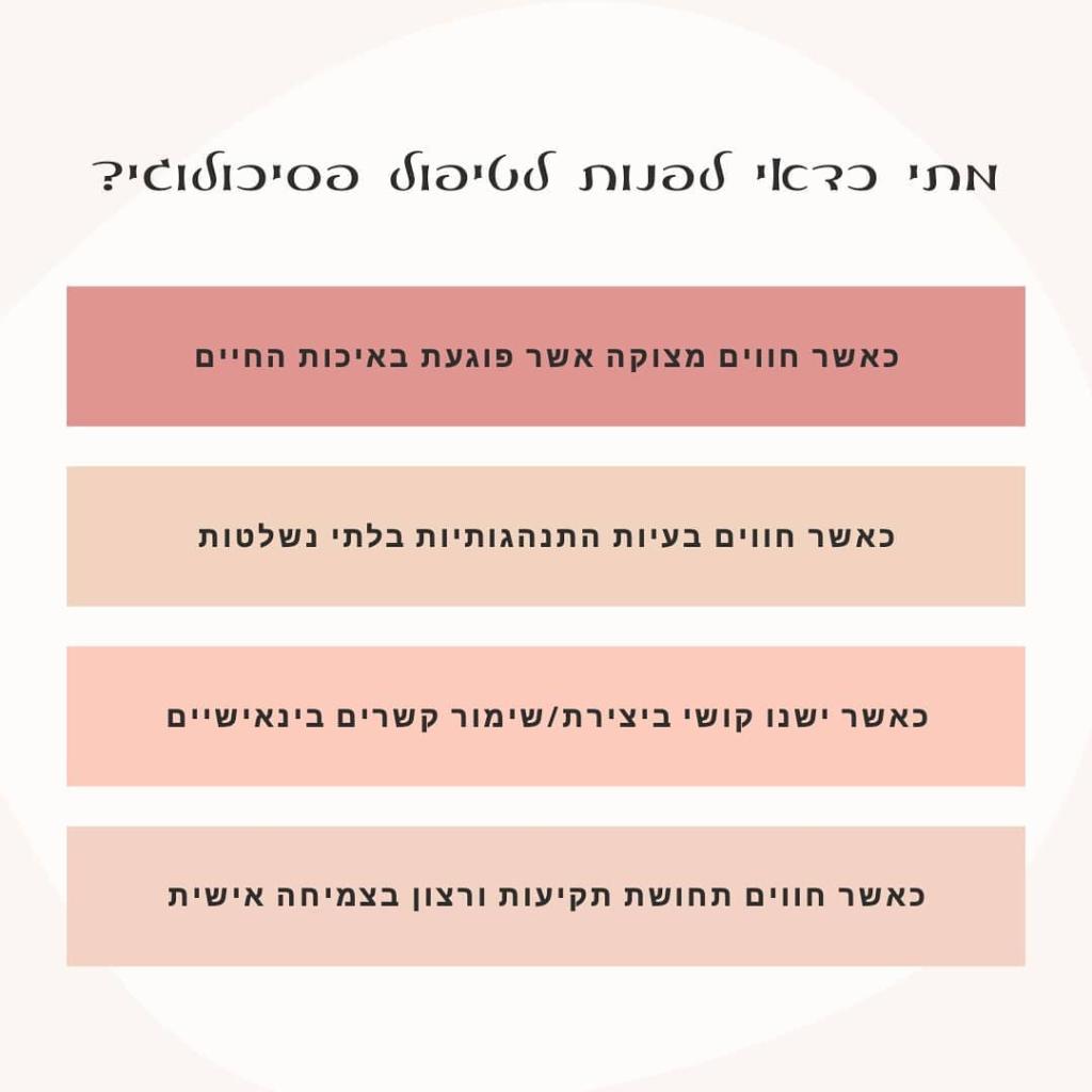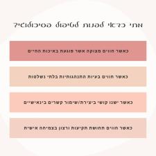 פסיכולוגית קלינית מומחית (M.A.). מטפלת בילדים, מתבגרים ומבוגרים. אשמח לפגוש אתכם בקליניקה בפרדס-חנה או בטיפול "מרחוק". בעלת ניסיון בטיפול במגוון מצוקות וקשיים (דיכאון, חרדה, יחסי הורים-ילדים, משברי חיים), וניסיון רב בטיפול פסיכודינמי של ילדים בגיל הרך ומתבגרים המאובחנים על הרצף האוטיסטי, ובהדרכה וליווי של משפחותיהם. גישתי הטיפולית היא פסיכודינמית עם שילוב של כלים קוגניטיביים-התנהגותיים ו-EMDR