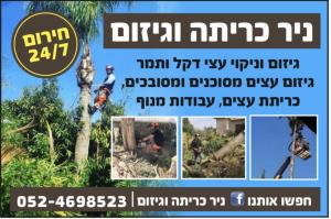 כריתה וגיזום עצים, גיזום דקלים העתקות עצים. כריתות מורכבות על ידי מנוף וסנפליג. עצים להסקה גירדום שורשים אחזקות ופיתוח.