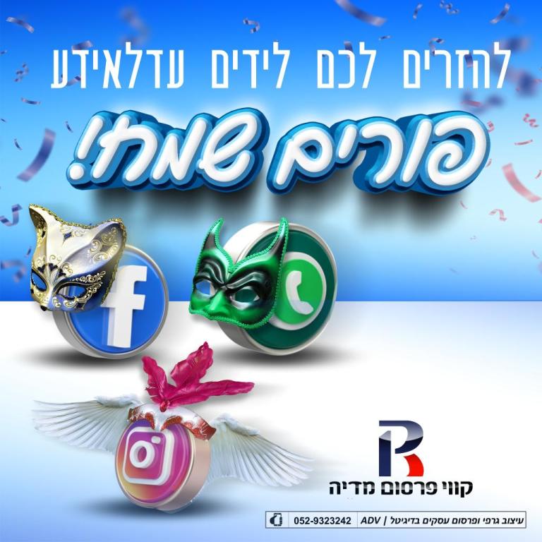לחבר לקוחות חדשים אל העסק שלך! השאירו פרטים ונבצע דברים גדולים עבור העסק שלכם! ניהול שותף לעמוד העסק בפייסבוק ובאינסטגרם. פרסום וחשיפה ברשתות החברתיות ליצירת רייטינג. פילוח קהל שמעוניין במוצר או שירות העסק שלכם. עיצוב גרפי למדיה ולכל תחומי הפרסום לעסק שלך. מיתוג ובניית עיצוב וקידום אתרים ודפי נחיתות. יצירת סרטון תדמית / מצגת במדיה לעסק שלך ועוד...