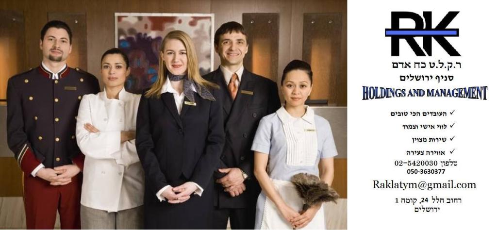 אנו חברת ר.ק.ל.ט גאים להוביל במתן פתרונות תעסוקה בבתי מלון בארץ. חברתנו עובדת עם רוב בתי המלון ורשתות שונות מהגדולות בארץ ועד לקטנות. "אני מאמין" של חברתנו במתן שירות לעובדי וצוות החברה. סניפנו כיום: תל אביב, ירושלים, ים המלח ואילת. התאמת העובד לארגון ולתפקיד זה למעשה תפקידנו. לאחר שיחה עם העובד, לימוד דרישות העובד ודרישות הלקוחות אנו מלווים את העובד למקום העבודה ולכל תהליך הקליטה במקום החדש.
