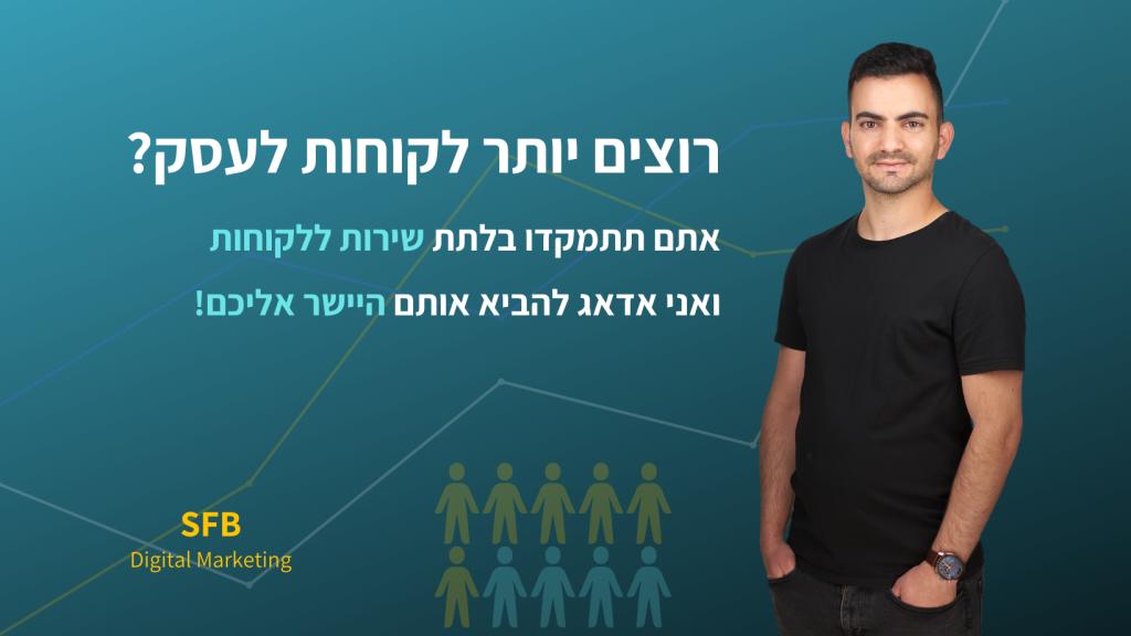 SFB הינה סוכנות דיגיטל בבעלות שי כהן המסייעת בכל יום לעסקים לתפוס את מקומם בדיגיטל ולבלוט מעל אחרים. מספקים שירותי פרסום ממומן רווחיים בגוגל ופייסבוק, קידום אורגני איכותי שרואה מקומות ראשונים, וניתוח אנליטי מתקדם שאין שני לו. בראש ובראשונה אצלי זה השירות, מקצועיות השקיפות והתוצאות! אני כאן בכדי להגשים לך את החלום, לשפר את שיעורי ההמרה באתר שלך, להגדיל את כמות הלידים והמכירות ולישון טוב בלילה.