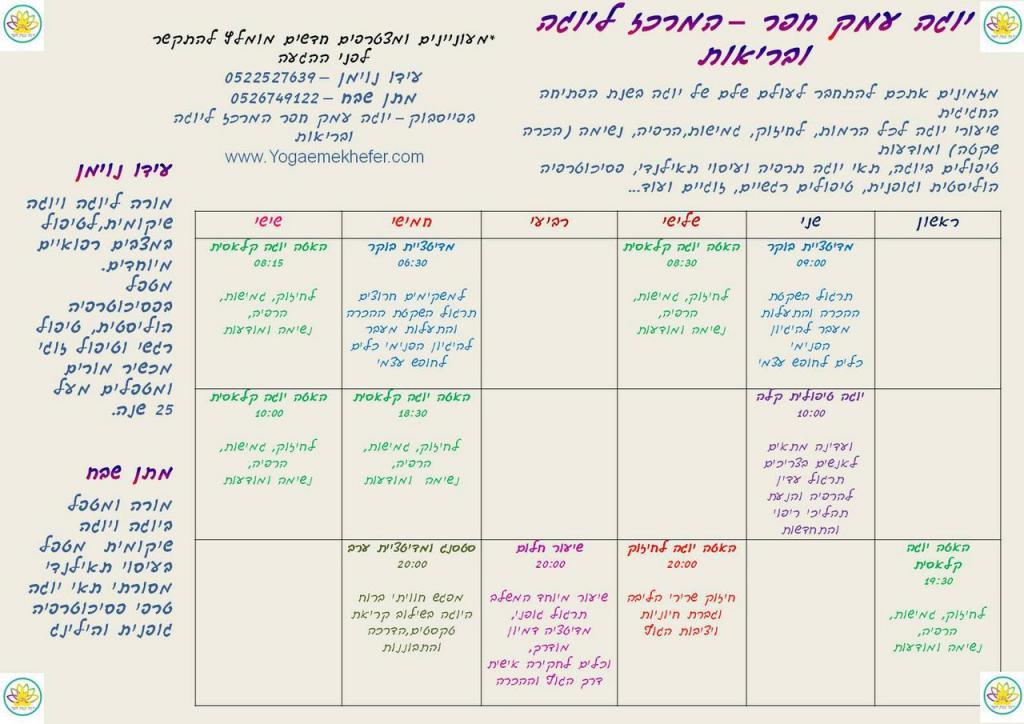 מרכז ליוגה המקיים מספר גדול של שיעורים בשבוע בשעות שונות ביחס אישי מקום שקט ירוק ויפה המציע יחס אישי לכל אחד וסביבה מכילה