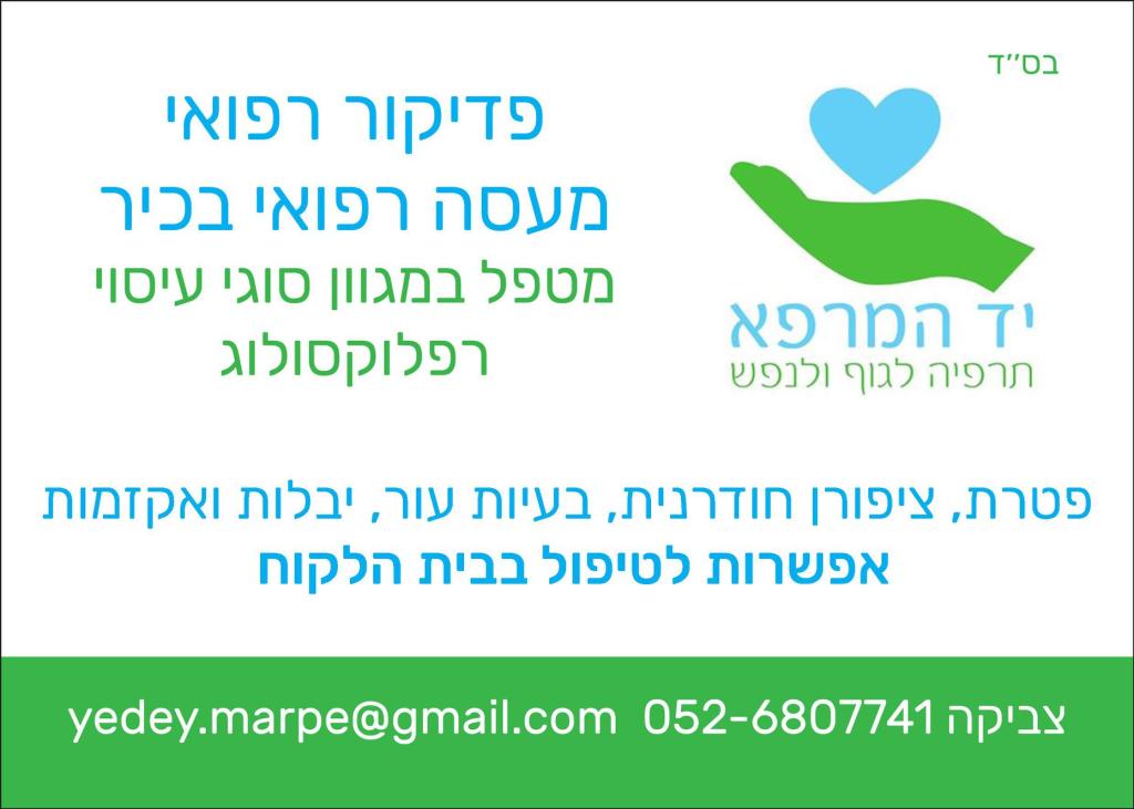 מטפל רפואי במגוון סוגי עיסוי ורפלקסולוגיה. פדיקור רפואי - טיפול בפטרת טיפול בציפורן חודרנית, וטיפול כף הרגל.